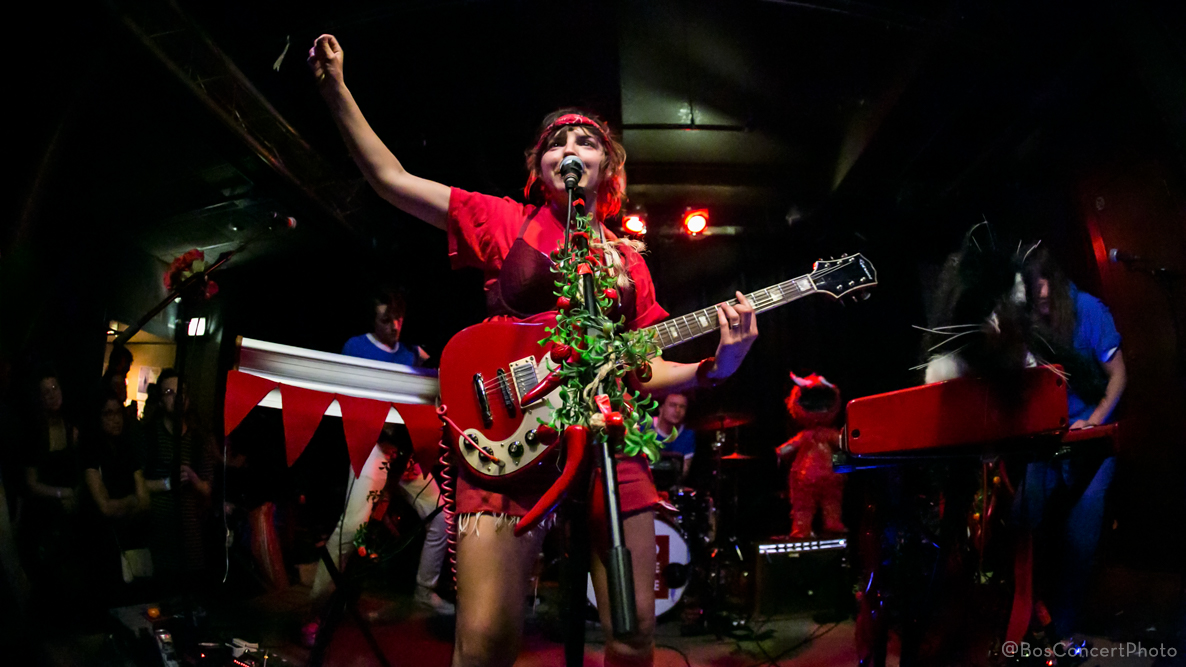 Touring behind her latest release (and Music Savage #AOTY nominee,) LONER, Rose and her band of merry mischief makers (including a handless Elmo and Chelsea the faceless, animatronic cat) are ripping up sold out shows across this great land of ours. The sold out show at Great Scott was no exception. Working their way through almost the whole LONER album—each track apparently Caroline’s personal favorite—and even a Britney Spears cover, the red-and-blue clad quartet held audience members in the palm of their hand from the first drop. It was one of those shows that showcases people of all ages rocking out and grinning like fools from open to close.